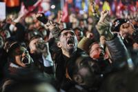 People shout slogans in Istanbul, Turkey, Thursday, March 20, 2025, during a protest rally against the arrest of Istanbul Mayor Ekrem Imamoglu. (AP Photo/Emrah Gurel)