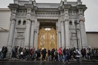 People gather outside the City Hall to protest the arrest of Istanbul Mayor Ekrem Imamoglu in Istanbul, Turkey, Wednesday, March 19, 2025. (AP Photo/Francisco Seco)
