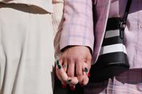 Becky Pepper-Jackson holds hands with her mother Heather Jackson outside the Supreme Court after arguments over state laws barring transgender girls and women from playing on school athletic teams, Tuesday, Jan. 13, 2026, in Washington. (AP Photo/Julia Demaree Nikhinson)
