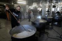 Volunteers cook meals for displaced people who fled Israeli airstrikes in southern Lebanon and Dahiyeh, Beirut's southern suburbs, at the Bir Hassan Technical Institute, which has been turned into a shelter, in Beirut, Lebanon, Wednesday, March 11, 2026. (AP Photo/Bilal Hussein)