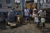 In the summer heat, a Palestinian boy carries jerrycans after collecting water from a distribution point in Gaza City, Tuesday, Aug. 12, 2025. (AP Photo/Jehad Alshrafi)