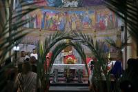 Christian clergy attend a Palm Sunday Mass in Gaza City Sunday, March 29, 2026. (AP Photo/Jehad Alshrafi)