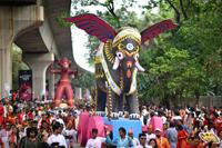 People participate at the Baishakhi Shobhajatra procession to celebrate the first day of the Bangla New Year in Dhaka, Bangladesh, Tuesday, April 14, 2026. (AP Photo/Mahmud Hossain Opu)