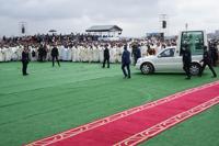 Some people who struggled to walk were brought to the Mass in wheelbarrows pushed by family members.