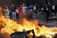 Protesters block a street during the "Bloquons Tout" (Block Everything) protest movement in Paris, Wednesday, Sept. 10, 2025. (AP Photo/Thibault Camus)