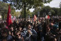 Protestors gather during the « Bloquons Tout » (Block Everything) protest movement in Paris, Wednesday, Sept. 10, 2025. (AP Photo/Thibault Camus)