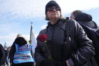 A Polish woman attends a memorial service in Warsaw, Poland, Thursday, April 10, 2025, during the 15th anniversary of the plane crash in Russia that killed former Polish President Lech Kaczynski. (AP Photo/Czarek Sokolowski)