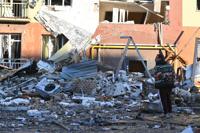 A rescue worker walks in front of residential building which was heavily damaged after a Russian strike in Odesa, Ukraine, Monday, April 6, 2026. (AP Photo/Michael Shtekel)