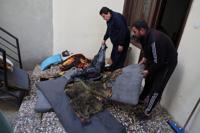 Men remove burned furniture inside a damaged home following overnight violence in the predominantly Christian town of Al-Suqaylabiyah, west of Hama, Syria, Saturday, March 28, 2026. (AP Photo/Omar Albam)