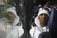 Korey Wise, one of the members of ‘The Central Park Five,’ sits on a bus outside the National Action Network headquarters in the Harlem neighborhood of New York as members of the organization prepare to depart on a Get Out the Vote bus tour on Friday, Sep. 27, 2024. (AP Photo/Noreen Nasir)