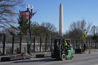 FILE - Workers install security fencing around the Ellipse near the White House ahead of the upcoming inauguration of President-elect Donald Trump in Washington, Jan. 14, 2025. (AP Photo/Jon Elswick, File)