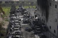 Damaged houses are seen in the Stalybridge area of Greater Manchester People after a "localised tornado" ripped off roofs and brought down walls as Storm Gerrit continued to impact the country, Manchester, England, Thursday, Dec. 28, 2023. (AP Photo/Jon Super)