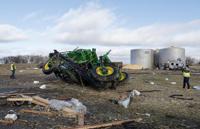 The storms left a swath of destruction that included dead and missing cows, roofs blown off of homes, destroyed storage sheds and barns, trashed vehicles and shattered windows.