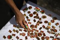 A street vendor sells badges of the Bangladesh Nationalist Party (BNP) leaders during a rally calling for a general election in December, in Dhaka, Bangladesh, Wednesday, May 28, 2025. (AP Photo/Mahmud Hossain Opu)