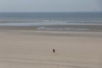A young boy runs on the beach after at least four people died while trying to board an inflatable boat for a dangerous sea crossing from northern France to the U.K. in Equihen-Plage, northern France. Thursday, April 9, 2026. (AP Photo/Jean-Francois Badias)
