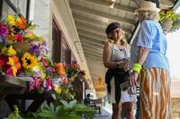 Lynn Neel and Trish Forest speak about the tragic passing of Cedar Glen community member Laura Ann "Lauri" Carleton on Tuesday, Aug. 22, 2023. Carleton was shot outside of her clothing store on Friday, Aug. 18, by a man who had ripped down an LGBTQ+ Pride flag outside the business and shouted homophobic slurs at her. (Anjali Sharif-Paul/The Orange County Register via AP)