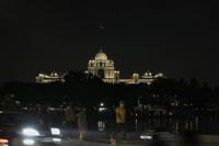 A crescent moon is seen above the Telangana State Secretariat building the day before the first daily fast of the Islamic holy month of Ramadan, in Hyderabad, India, Saturday, March 1, 2025. (AP Photo/Mahesh Kumar A.)