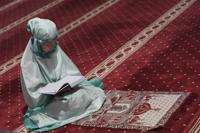 A Muslim woman reads Quran during the first day of the holy fasting month of Ramadan at Istiqlal mosque in Jakarta, Indonesia, Saturday, March 1, 2025. (AP Photo/Achmad Ibrahim)