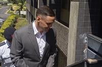 Bradley Robert Dawson, right, is escorted by police at the High Court in Lautoka, Fiji, on Tuesday, Feb. 11, 2025, before being sentenced to at least 18 years in prison for murdering his wife during their honeymoon in Fiji in 2022. (Salote Qalubau/The Fiji Times via AP)