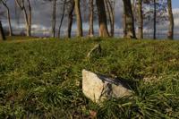 The bodies are buried with their heads to the west in three north-south rows, but nearly all of their gravestones have sunk below the surface. Only two small wedges are visible, poking up through the ground at adjacent graves. All of the graves likely have stone markers at both the heads and feet, although they are not likely carved with names, Greene said.