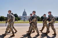 Armed National Guard soldiers from West Virginia patrol the Mall near the Capitol in Washington, as part of President Donald Trump's order to impose federal law enforcement in the nation's capital, Tuesday, Aug. 26, 2025. (AP Photo/J. Scott Applewhite)