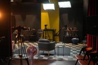 British Reform party leader Nigel Farage poses in front of a mock departures board during a press conference in a hangar at Oxford Airport in Kidlington, England, Tuesday, Aug. 26, 2025.(AP Photo/Joanna Chan)