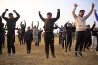 Newly recruited temporary police officers participate in a training session ahead of the March 5 general election in Dhankuta, about 390 kilometers (242 miles) east of Kathmandu, Nepal, Wednesday, Feb. 4, 2026. (AP Photo/Niranjan Shrestha)