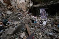 A boy holds his school book found amongst the rubble of a destroyed building, following a ceasefire between Hezbollah and Israel, in Dahiyeh, Beirut's southern suburbs, Lebanon, Monday, April 20, 2026. (AP Photo/Hussein Malla)