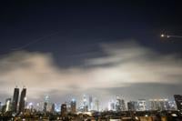 Israeli air defense system fires to intercept missiles during an Iranian attack over Tel Aviv, Israel, early Sunday, March 15, 2026. (AP Photo/Ohad Zwigenberg)