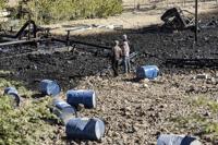 In the Syrian town of Derik, which lies where the borders of Syria, Iraq and Turkey meet, The Associated Press found a burnt out petrol station with destroyed buildings nearby.