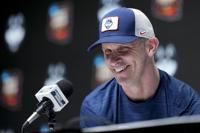 UConn men's basketball coach Dan Hurley watches the first round of the NBA basketball draft, Wednesday, June 26, 2024, in New York. (AP Photo/Julia Nikhinson)