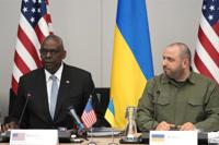 United States Secretary of Defense Lloyd Austin, left, speaks as he chairs a meeting of the Ukraine Defense Contact Group in the format of NATO defense ministers at NATO headquarters in Brussels, Thursday, June 13, 2024. At right is Ukraine's Defense Minister Rustem Umerov. (AP Photo/Virginia Mayo)