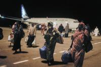 Sudanese, who had been stranded in Jeddah, Saudi Arabia, arrive at Port Sudan airport, Thursday, May 11, 2023. The conflict between the country's military and a rival paramilitary group has killed hundreds and displaced hundreds of thousands since it broke out in mid-April, creating a humanitarian crisis inside the country and at its borders. (AP Photo/Amr Nabil)
