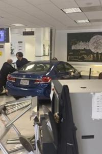 Molchanov was in line waiting for his turn to submit his visa documents when the car, a blue Honda sedan, barreled in through the main doors at full speed, barely missing him.