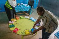 Election officials arrange stacks of ballot papers before the start of voting at a polling station in Garoua, Cameroon, Sunday, Oct. 12, 2025.(AP Photo/Welba Yamo Pascal)